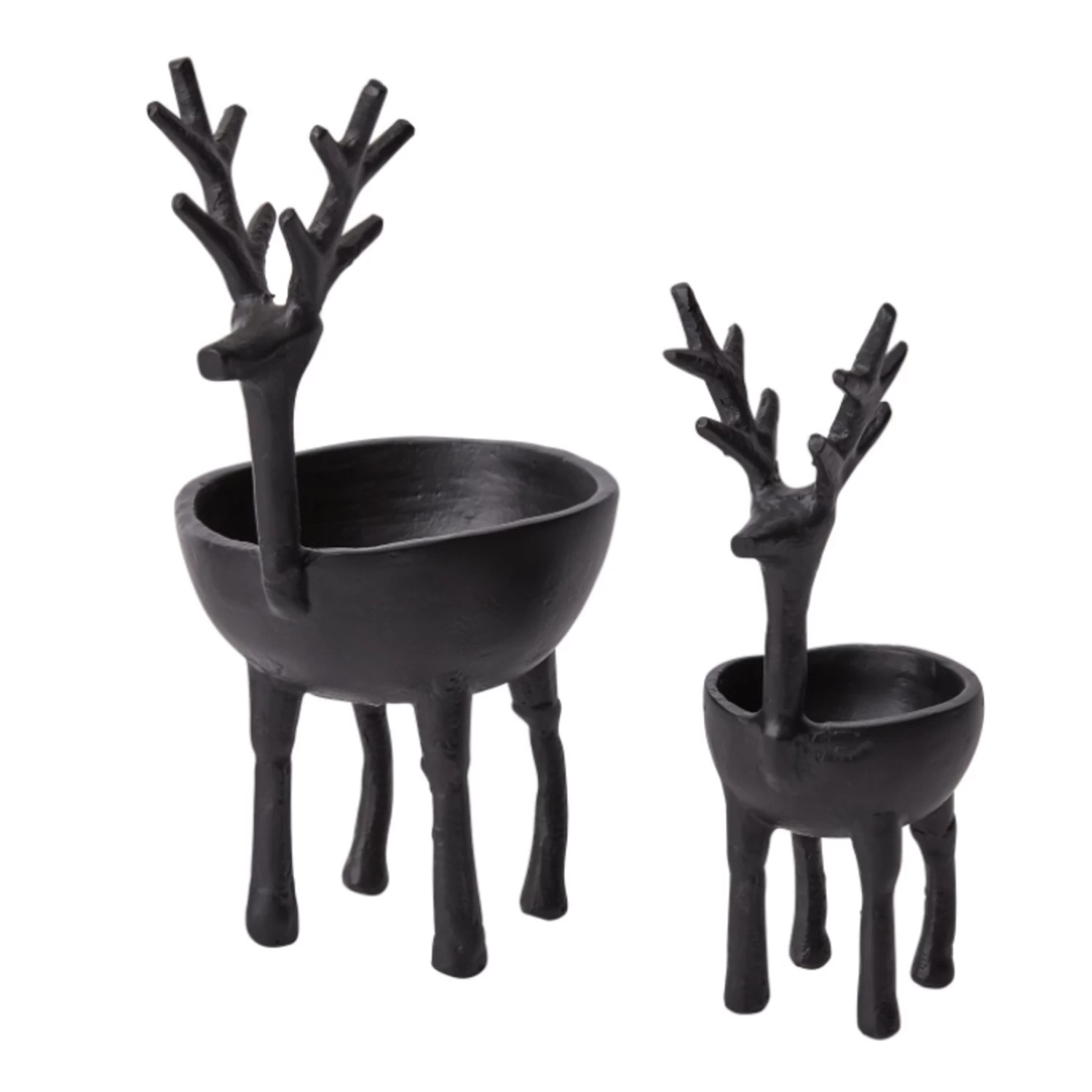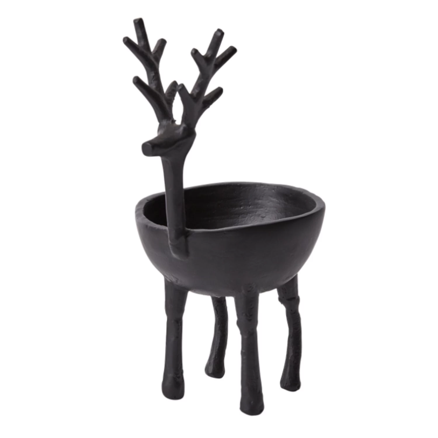 10.25”H X 6.5” X 5” BLACK METAL DASHER REINDEER BOWL