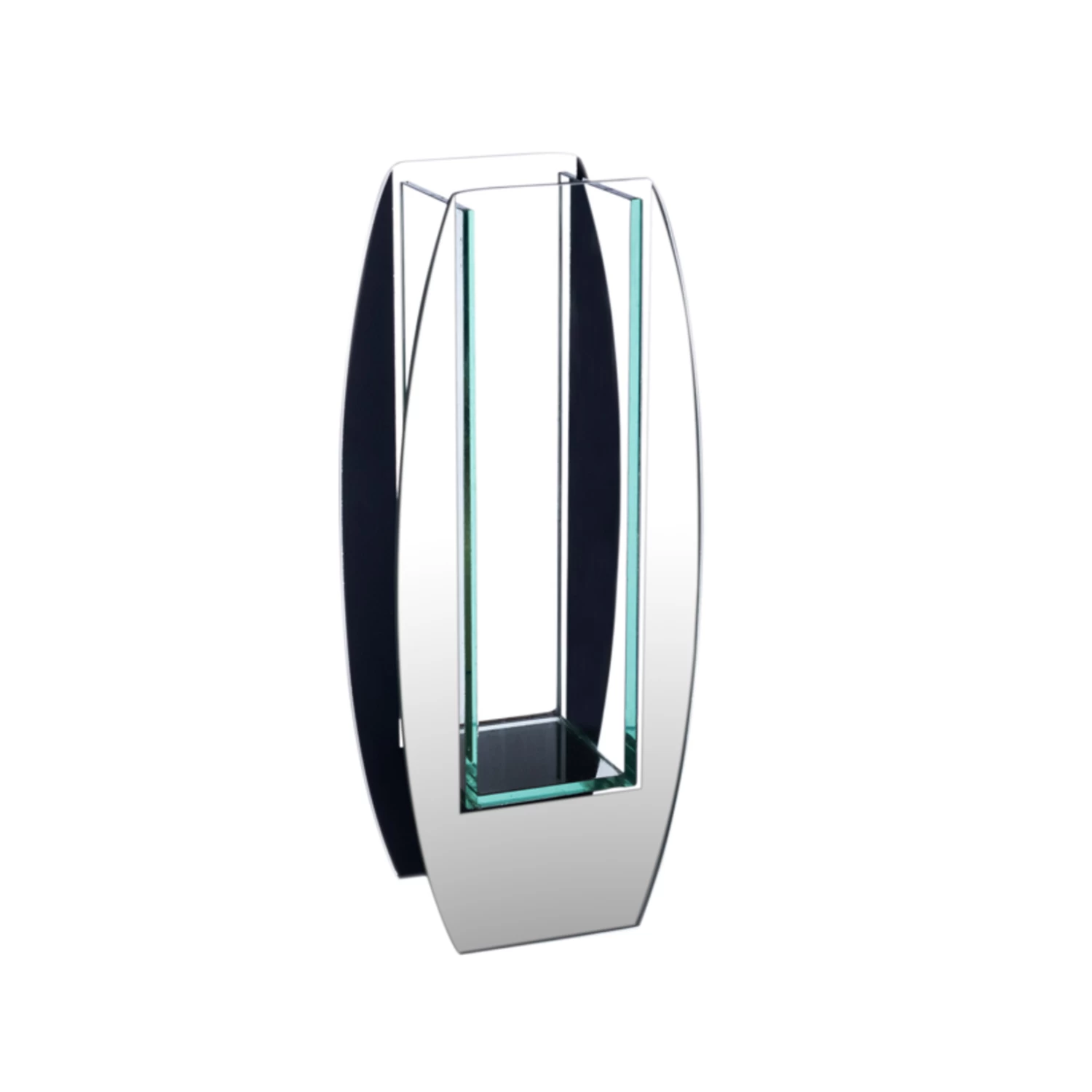 11.25”h X 3” X 2.5”open OVAL MIRROR PLATED GLASS