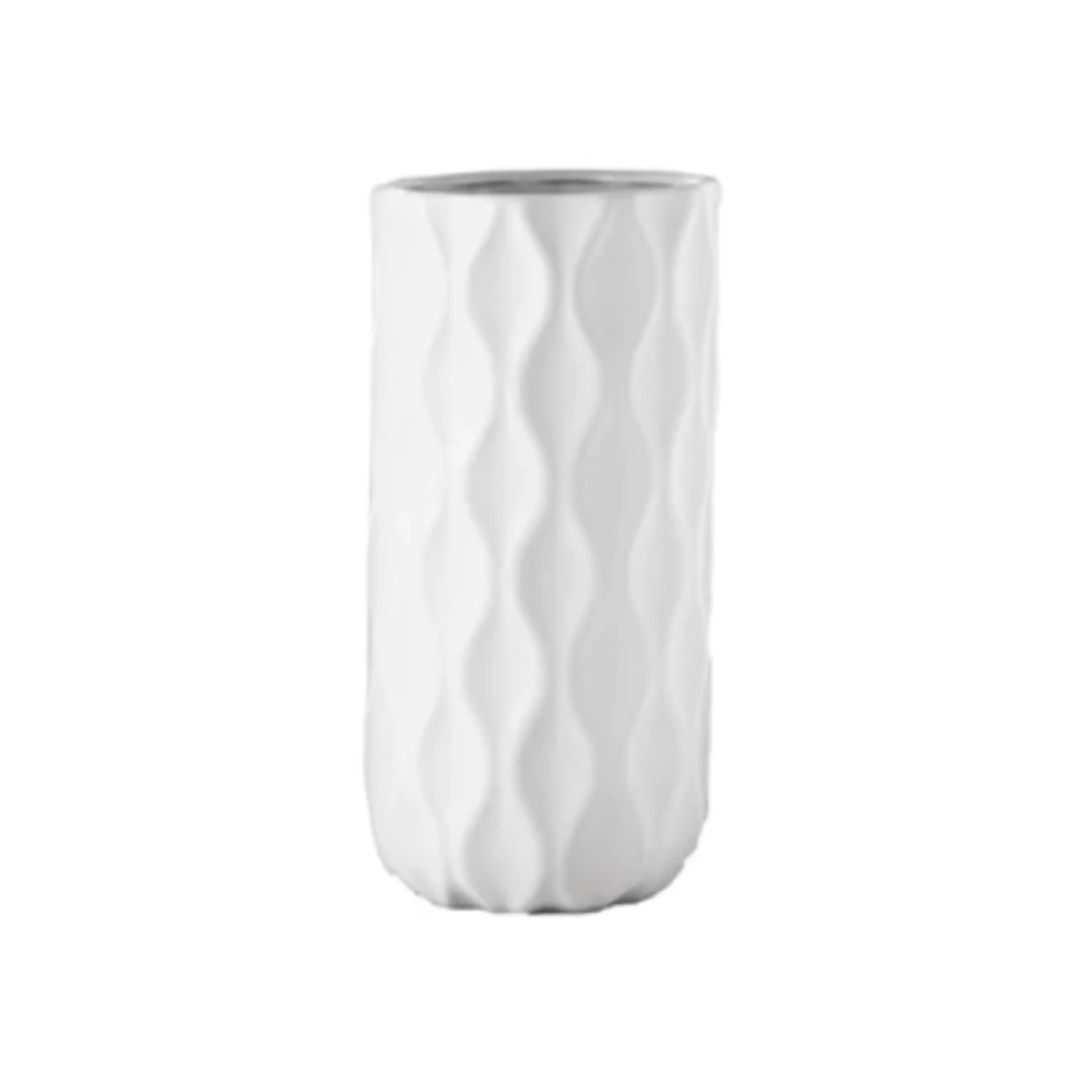 12.5”H X 6” MATTE WHITE CERAMIC CYLINDER PRESSED IMPERIAL