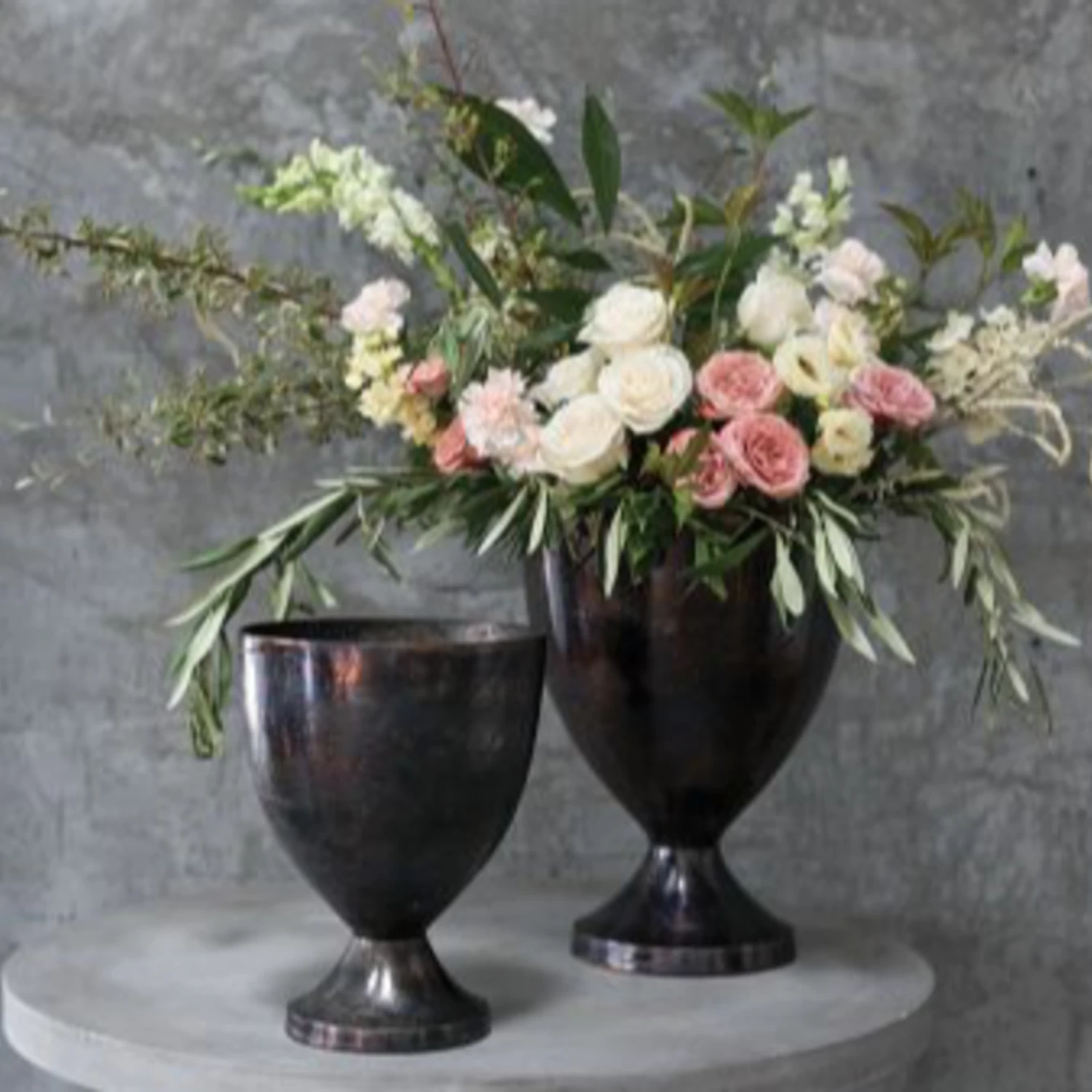 12.5”H X 9.75” BURNT SILVER ARSENAL METAL URN (AD)