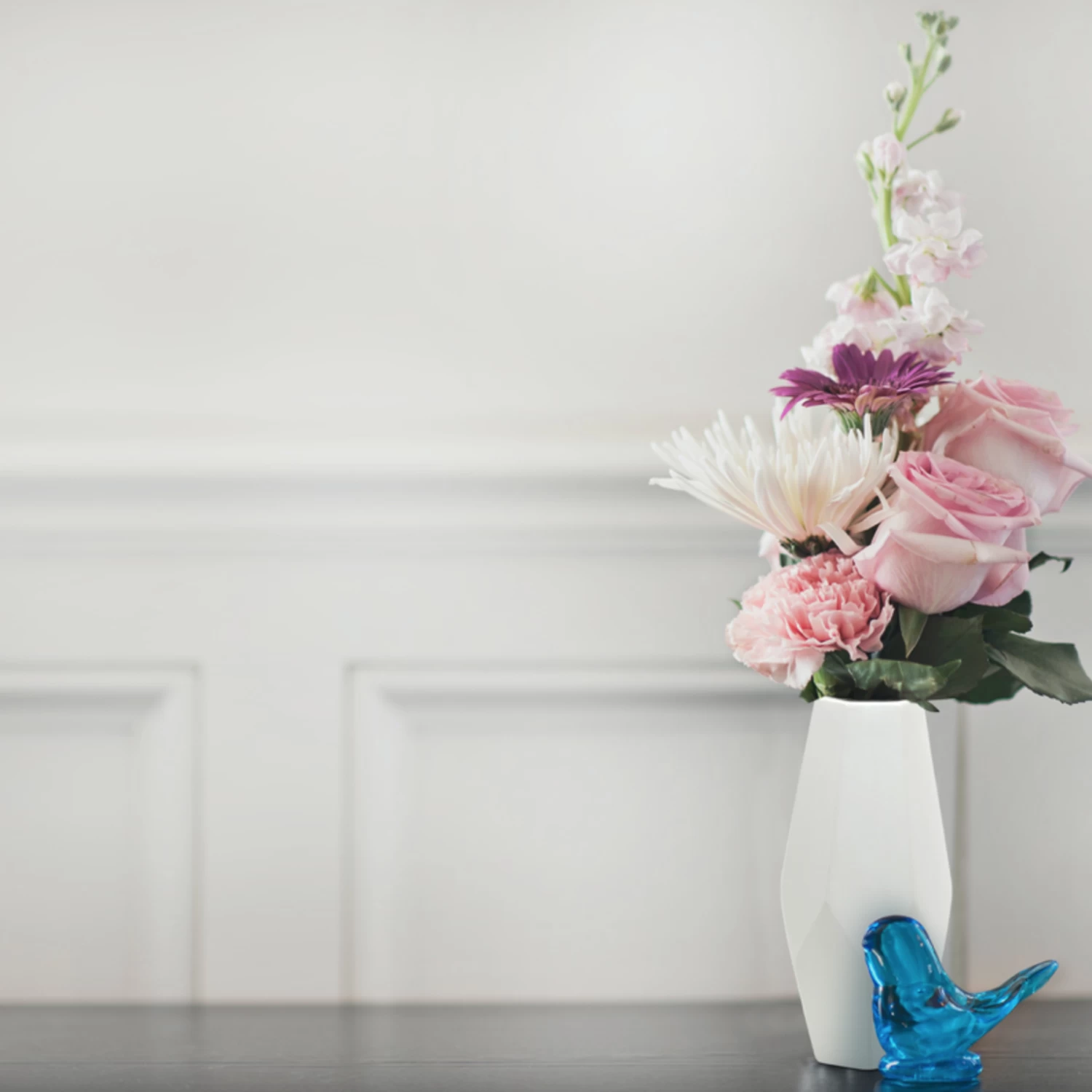 12.55”H X 5.75″WHITE CERAMIC GEO VASE