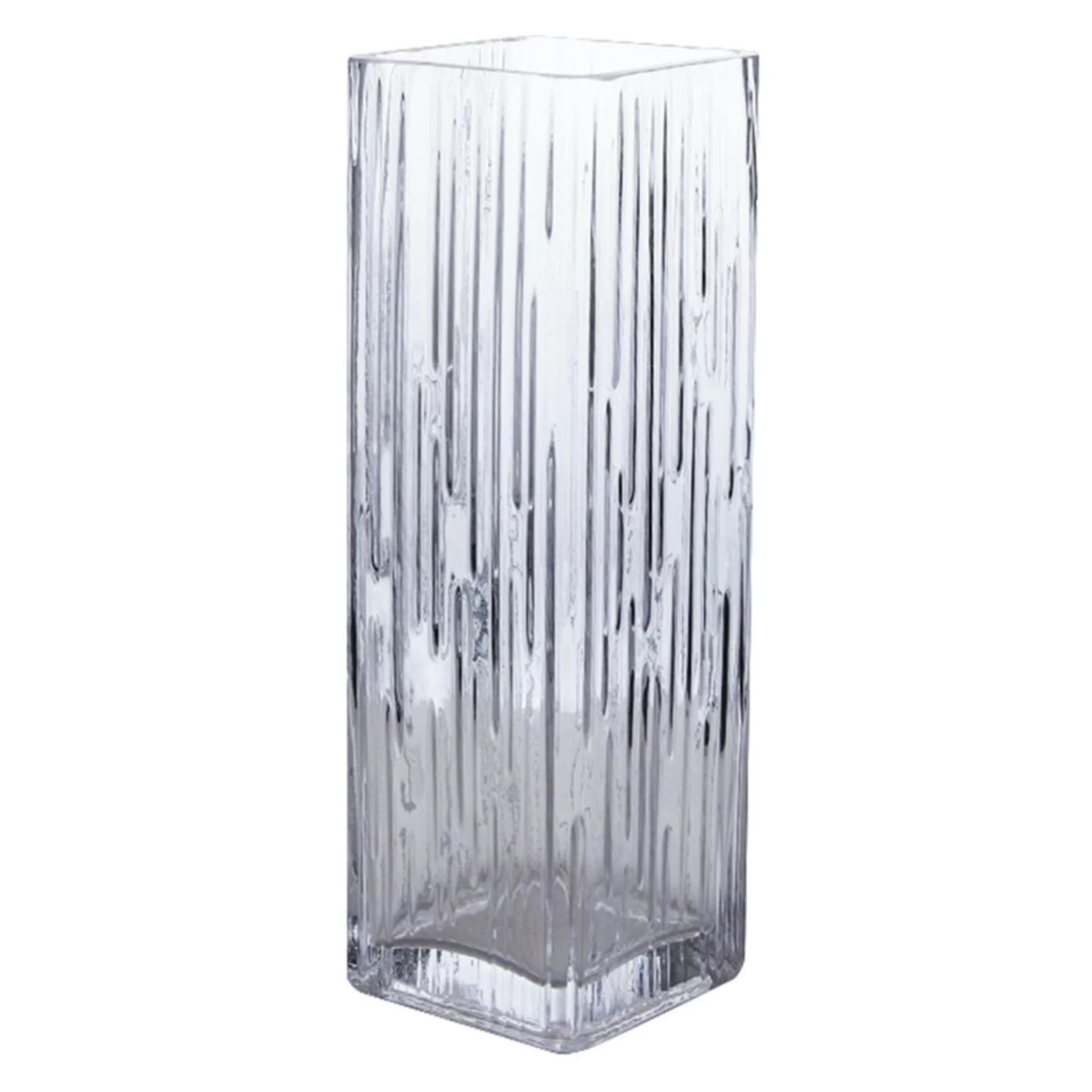 12”H X 4” X 4” ETCH TALL GLASS VASE WITH SQUARE OPENING