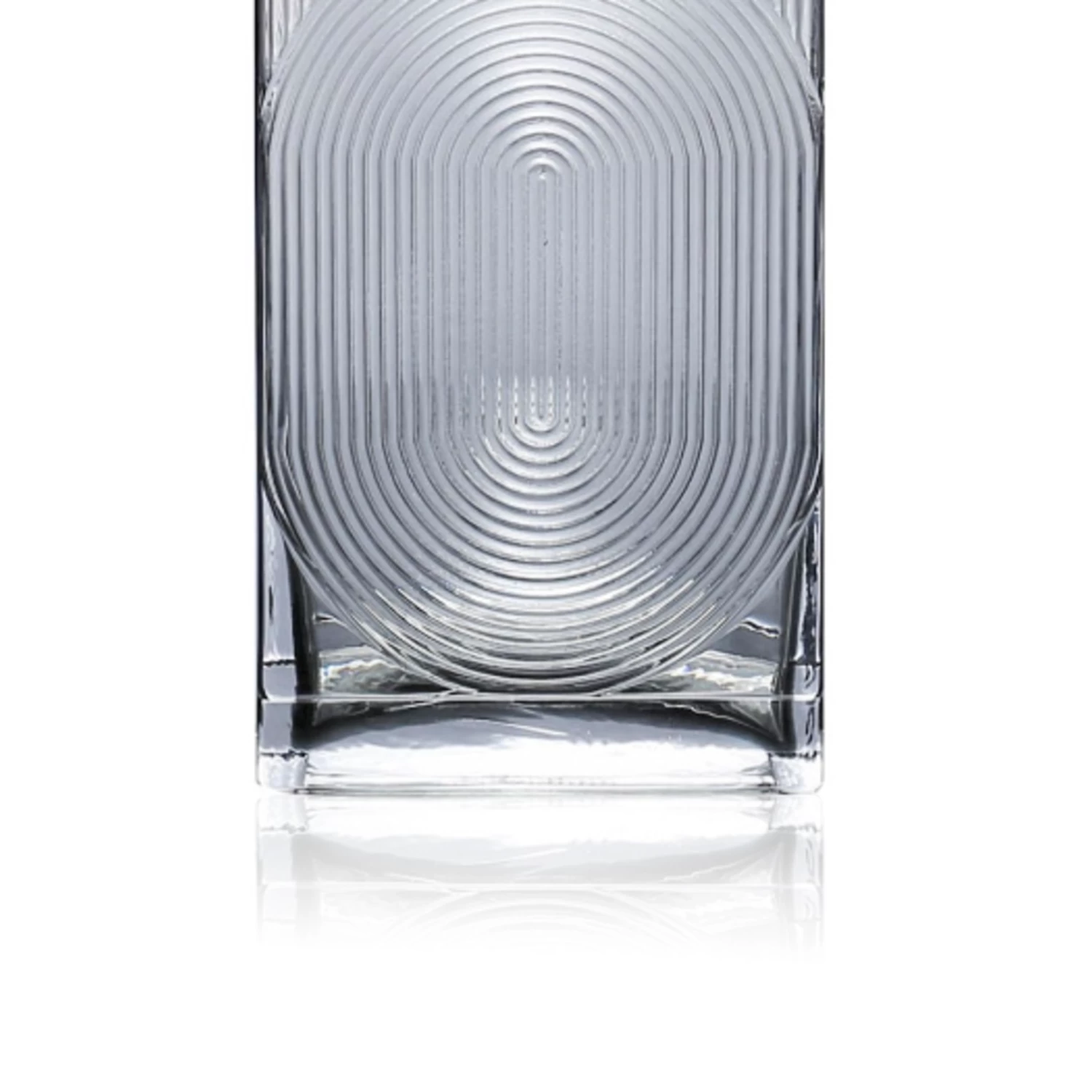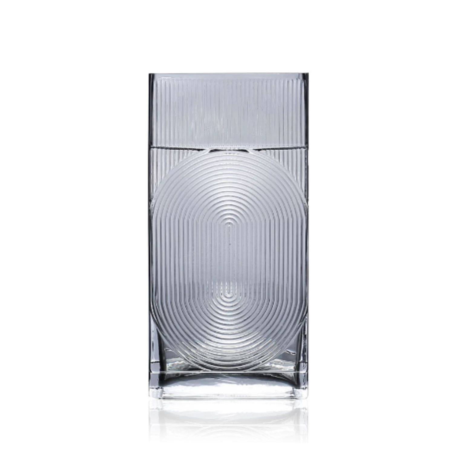 12”H X 6” X 2.75” GREY GLASS RIBBED/FLUTED RECTANGLE