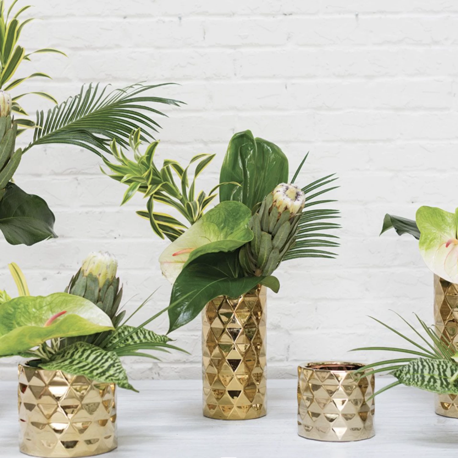 13.5”H X 5.25” ARCHITECT GOLD CERAMIC VASE(AD)