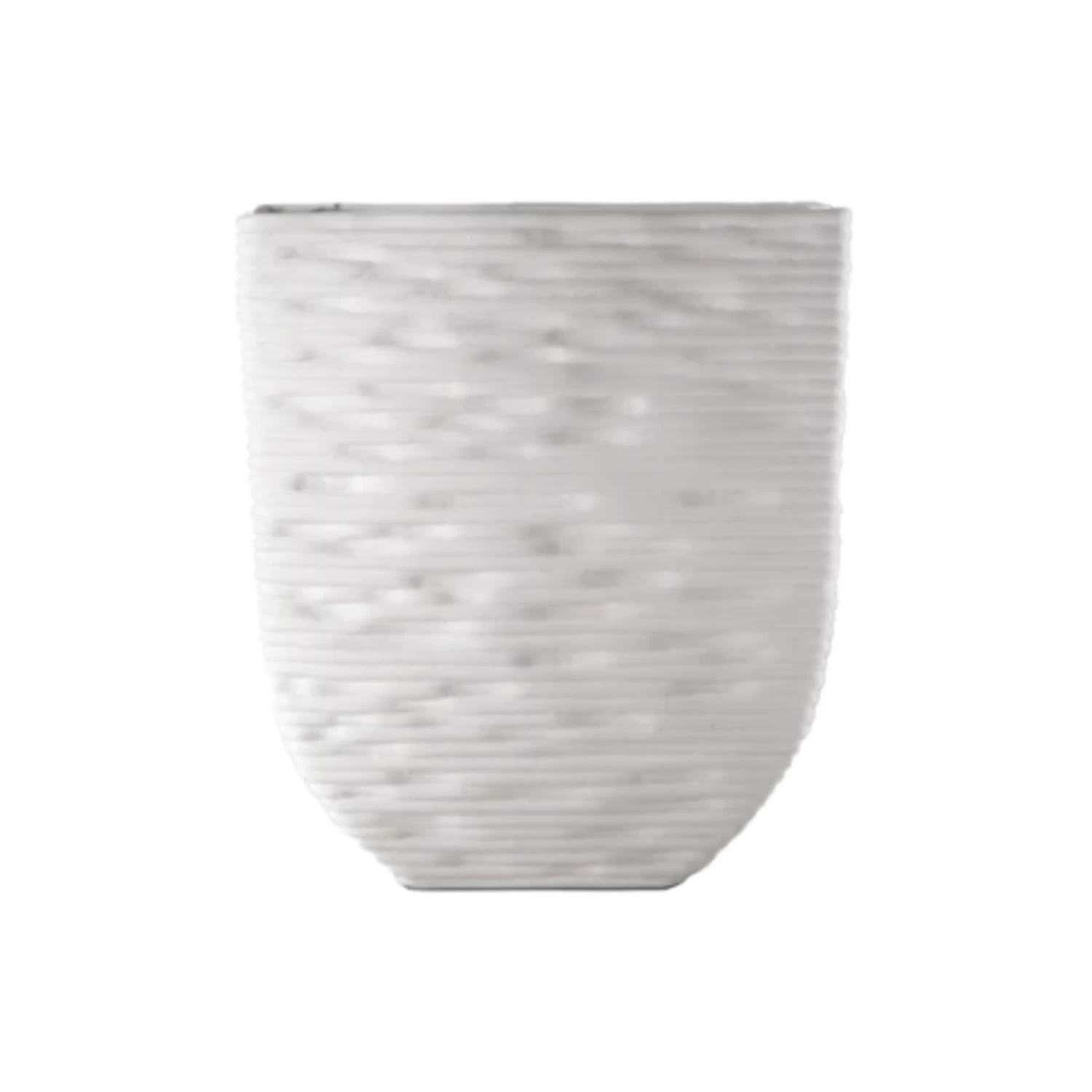 14.5”H X 4.5”W X 13.25”L WHITE CERAMIC ROUNDED TAPERED EMBOSSED SEAMLESS