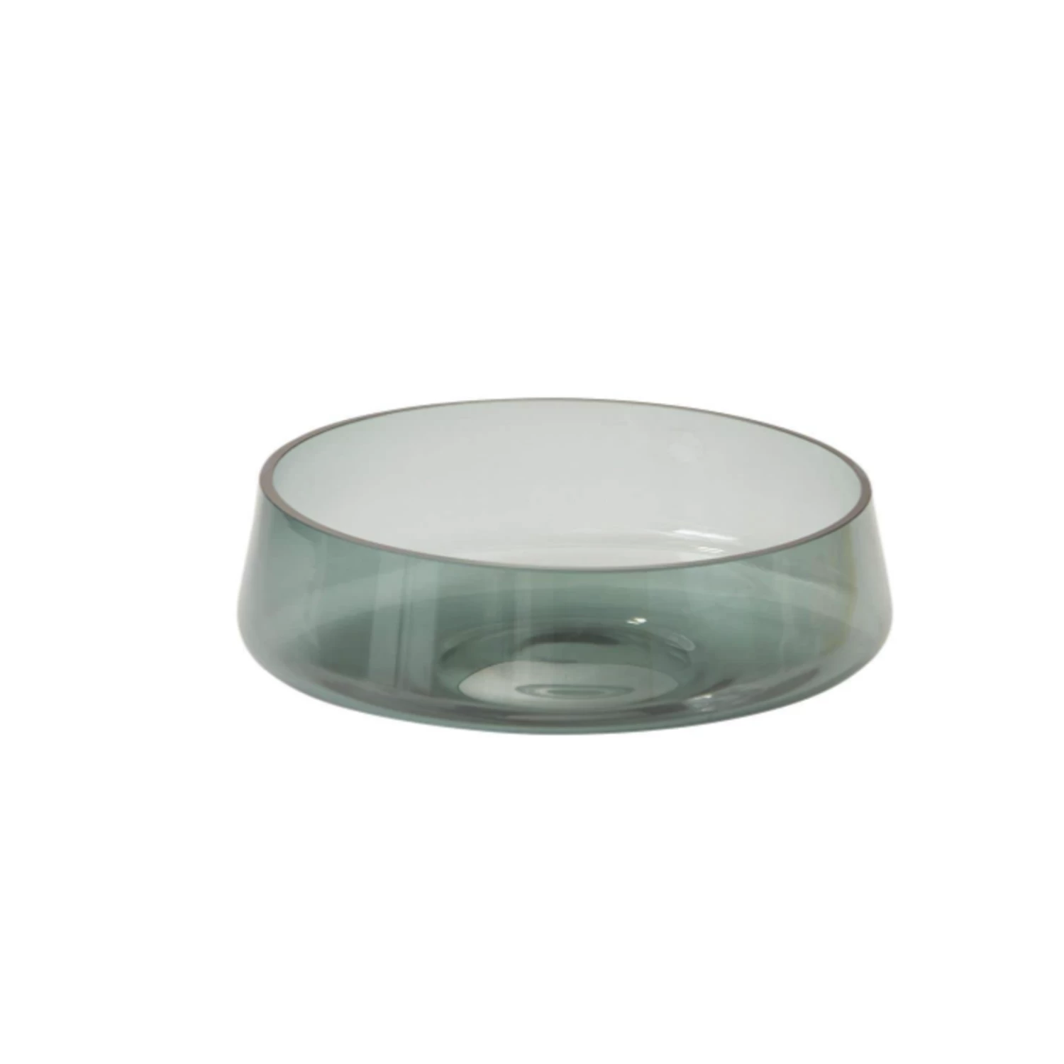 3”h X 8.5” GREEN ONDA GLASS LOW BOWL/CYLINDER