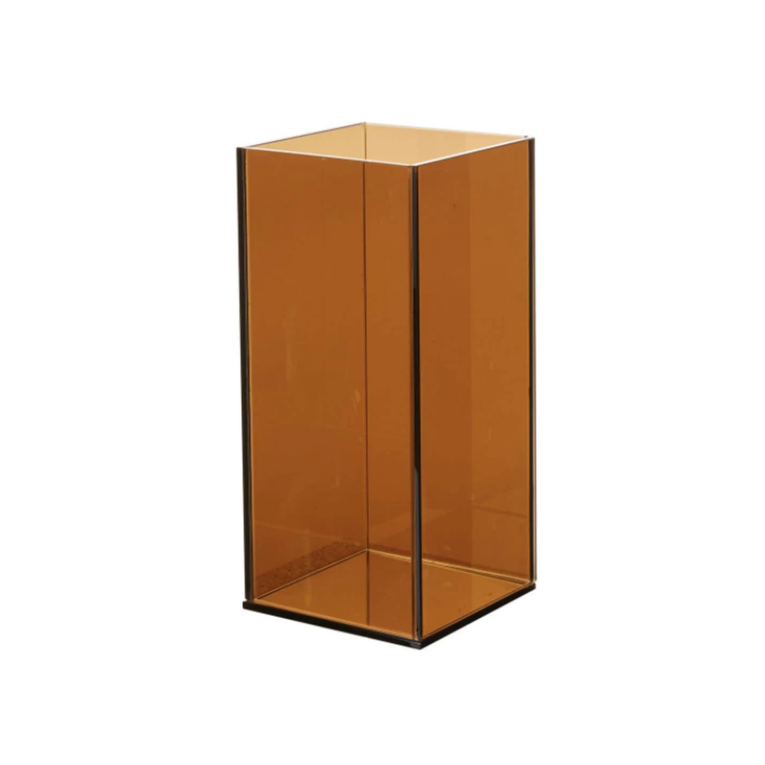 5.25”H X 3.75” X 3.75” AMBER GLASS FOREVER CANDLE REFLECTION MYRIAD CANDLE HOLDER VASE