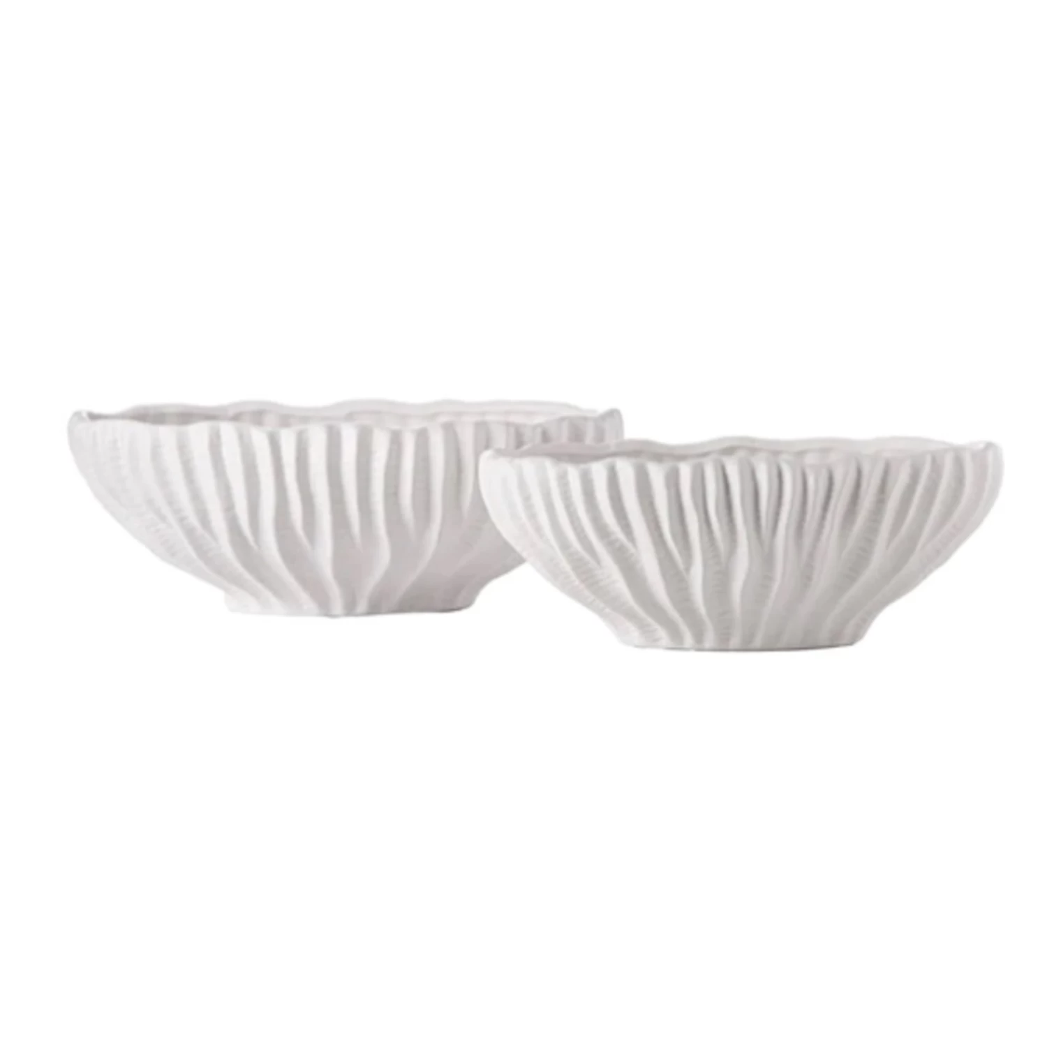 5.5”H X 14.5”L X 8.25”W SMALL MATTE WHITE LOW CERAMIC OVAL SEASHELL