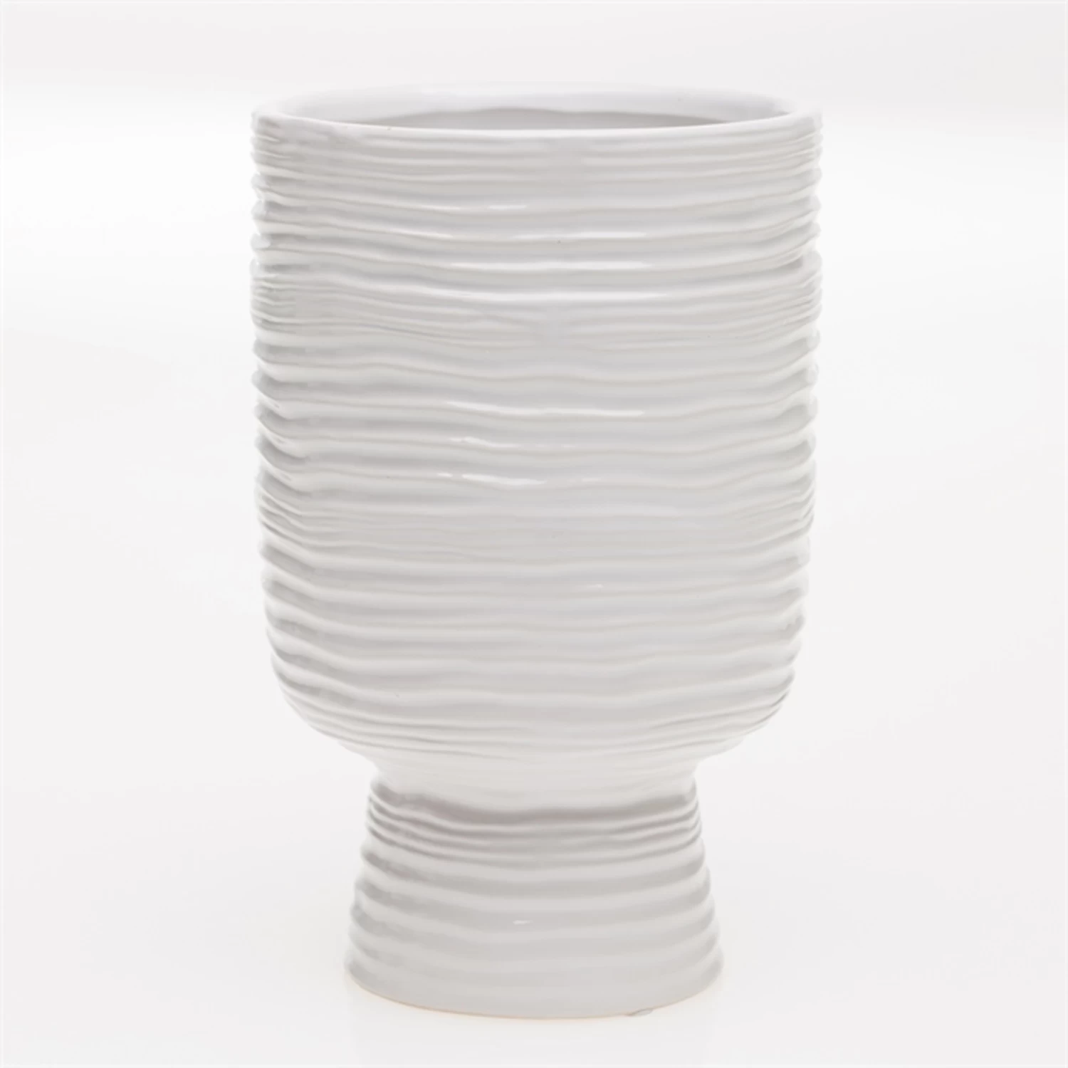 15.5”H X 4.5”D WHITE CERAMIC CAPRICORN TEXTURED CYLINDER