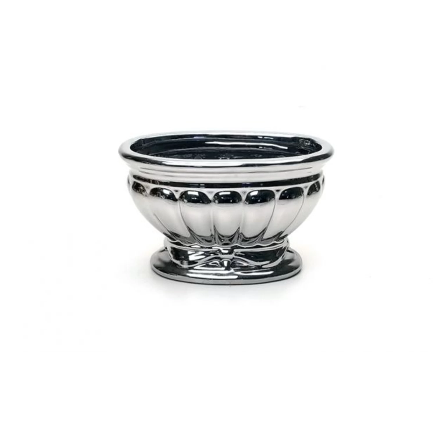 5.75”H X 9”L X 5”W CERAMIC OVAL COMPOTE VASE SILVER