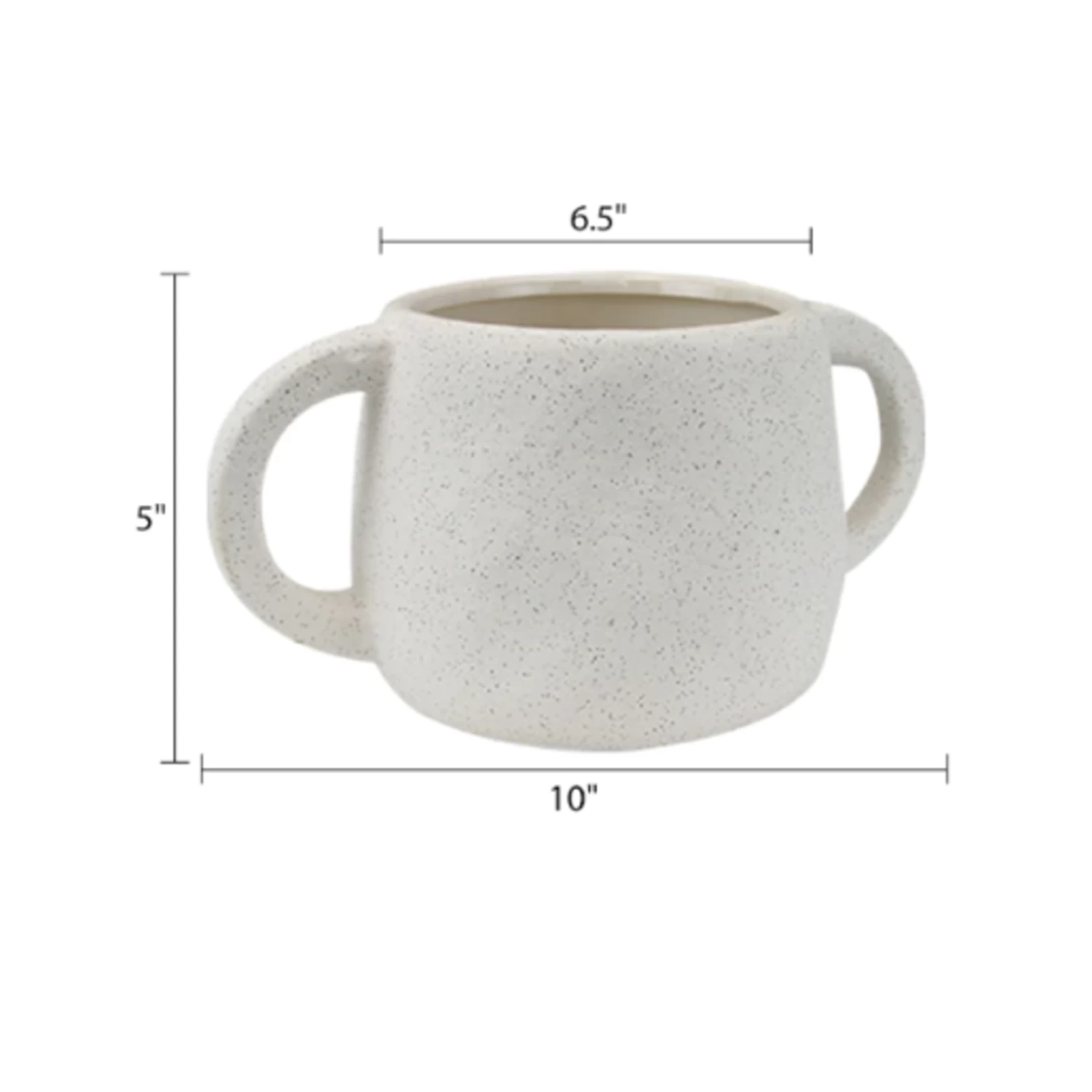 5”H X 6.5” X 10”L WHITE DOUBLE HANDLE CERAMIC POT VASE