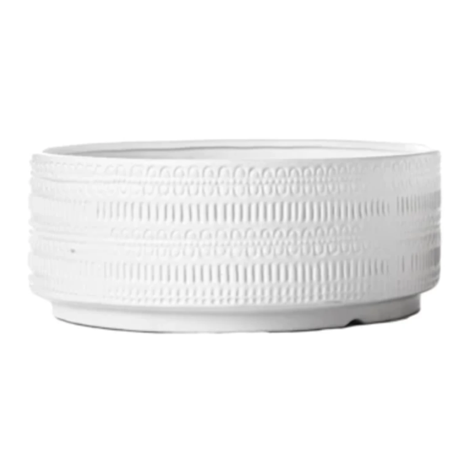 6.25”H X 13.25” MATTE WHITE LOW CERAMIC CYLINDER TRIBAL