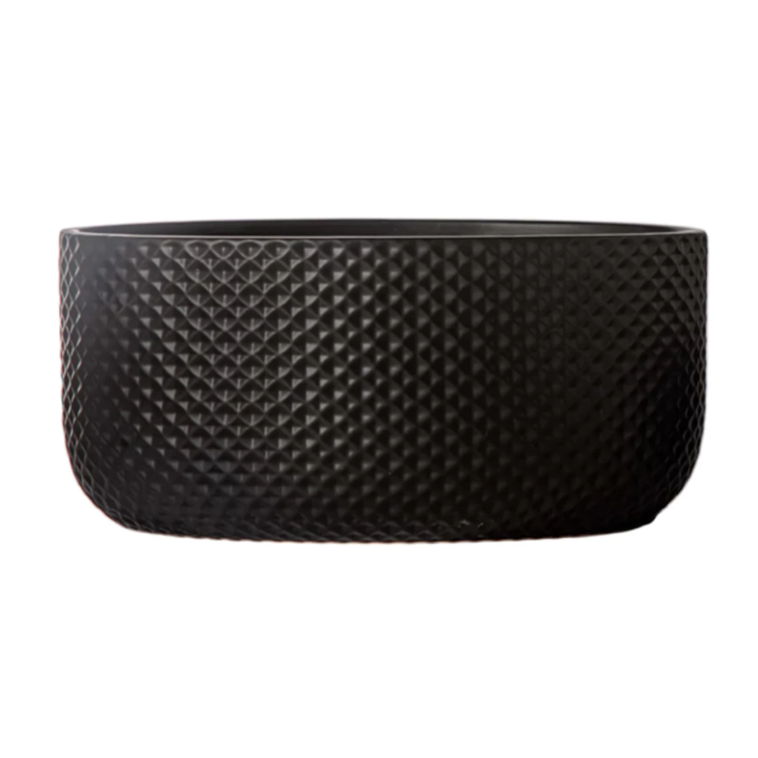 6.5”H X 13.5”L X 8.5” LARGE MATTE BLACK CERAMIC LOW OVAL EMBOSSED SYMMETRIC