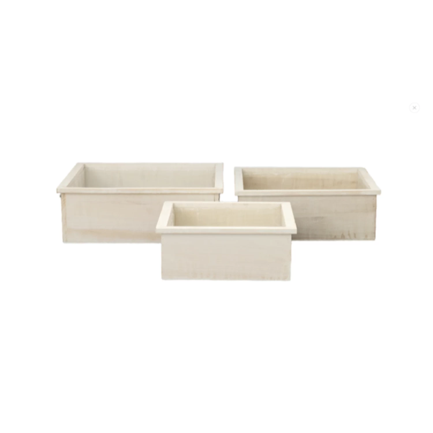 6.5”h X 17” X 17” LARGE WHITE WASH WOOD LOW SQUARE WITH LIP