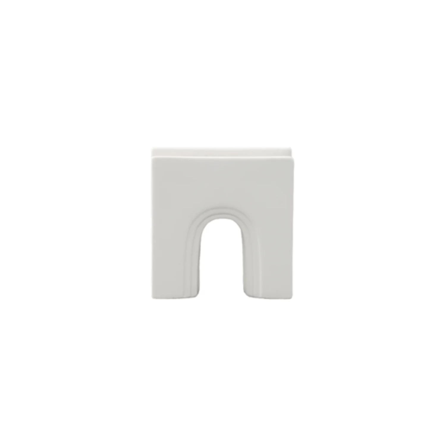 6.5″H X 6.25”L X 2.5”W MATTE WHITE Ceramic Rectangle Vase With Top Opening And Lower Archway Stair Hole