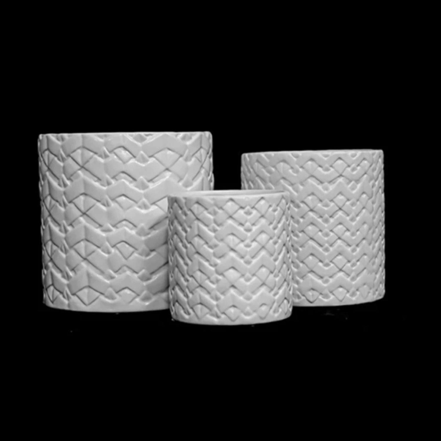 6.5” X 6.5” MEDIUM MatteCeramic Round Pot With Overlay Chevron Weave Pattern Design Body
