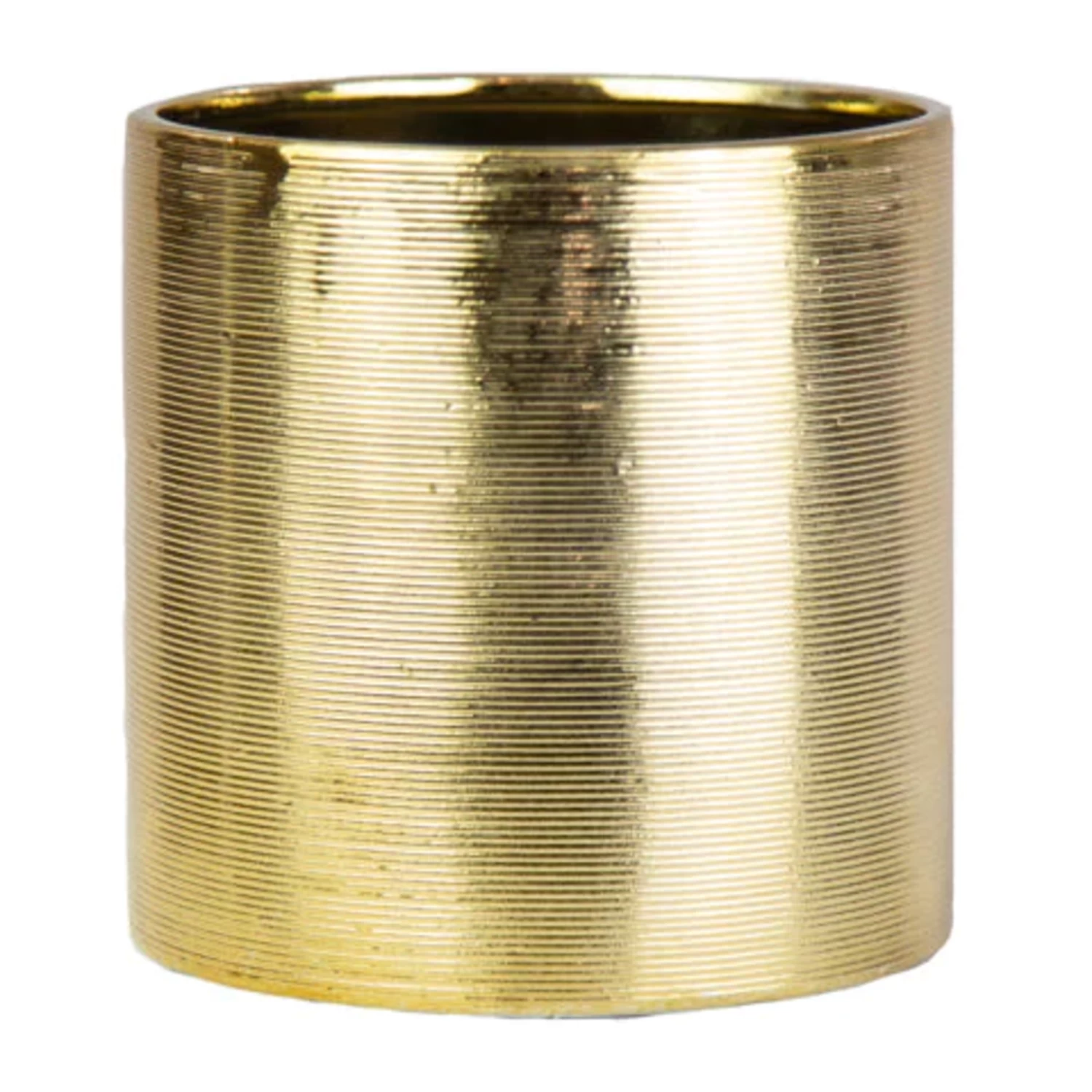 6” X 6” GOLD CERAMIC ROUND POT W/ BRUSHED DESIGN GLOSSY