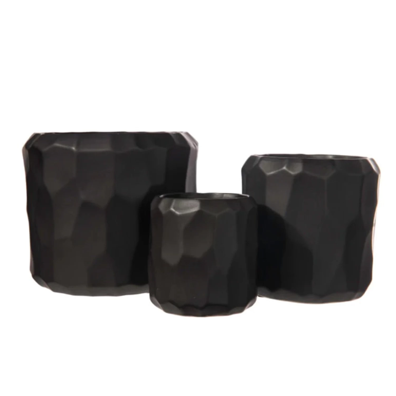 6” X 6” MEDIUM BLACK CERAMIC CYLINDER IRREGULAR PATTERN