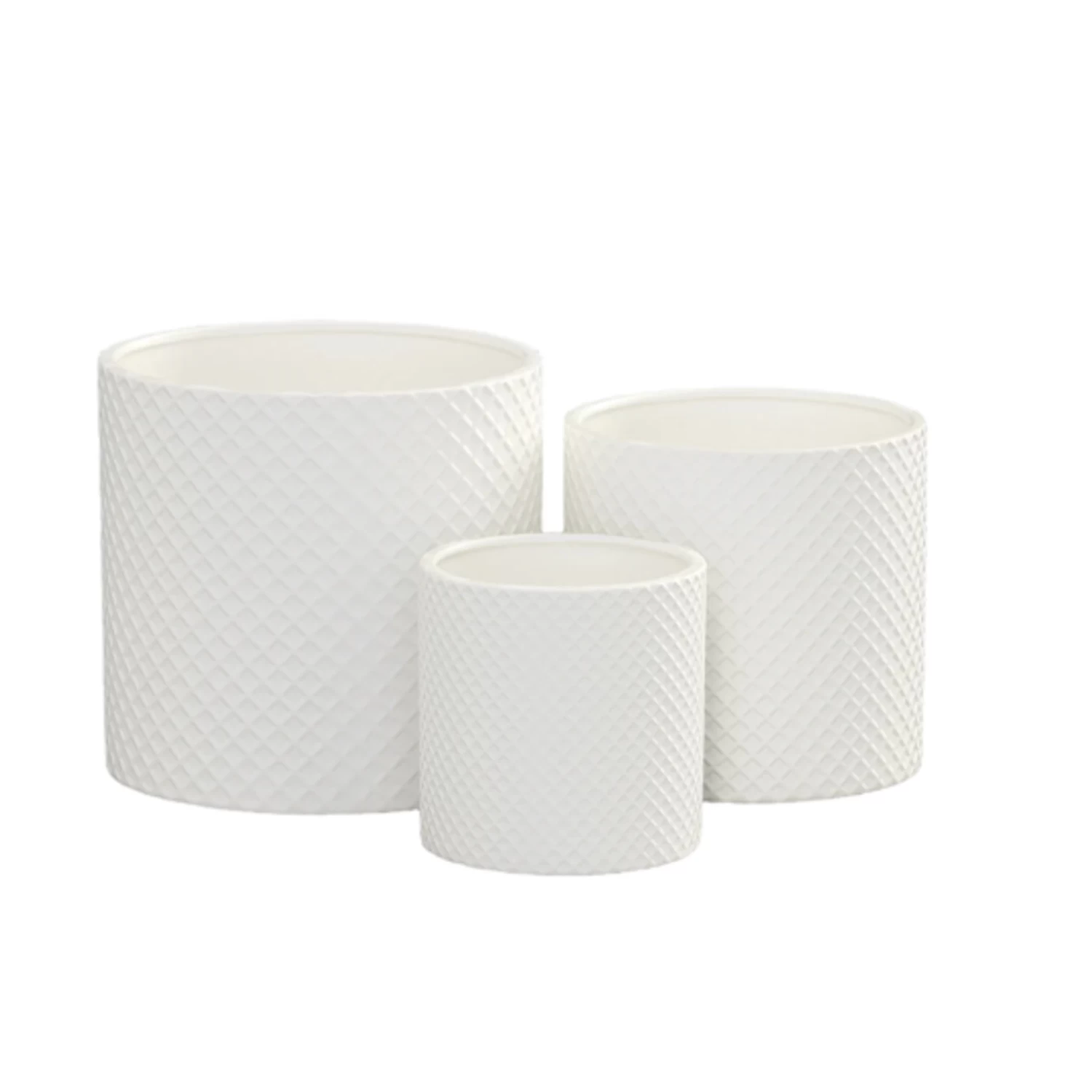 6” X 6” MEDIUM WHITE CERAMIC CYLINDER PRESSED DIAMOND PATTERN