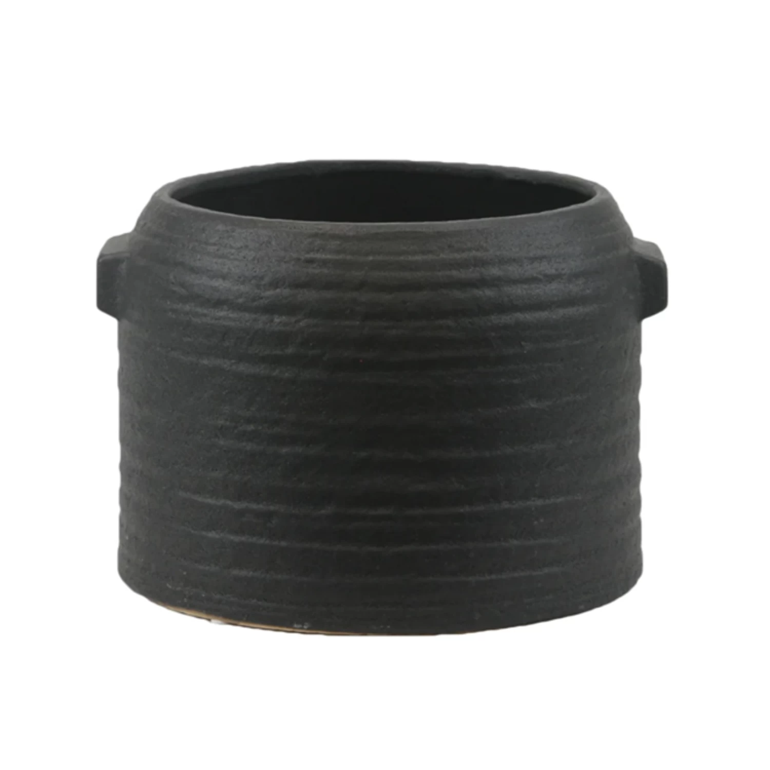 7.25”H X 10.5” BLACK ZINTO LOW AND WIDE CERAMIC PLANTER WITH SMALL HANDLE