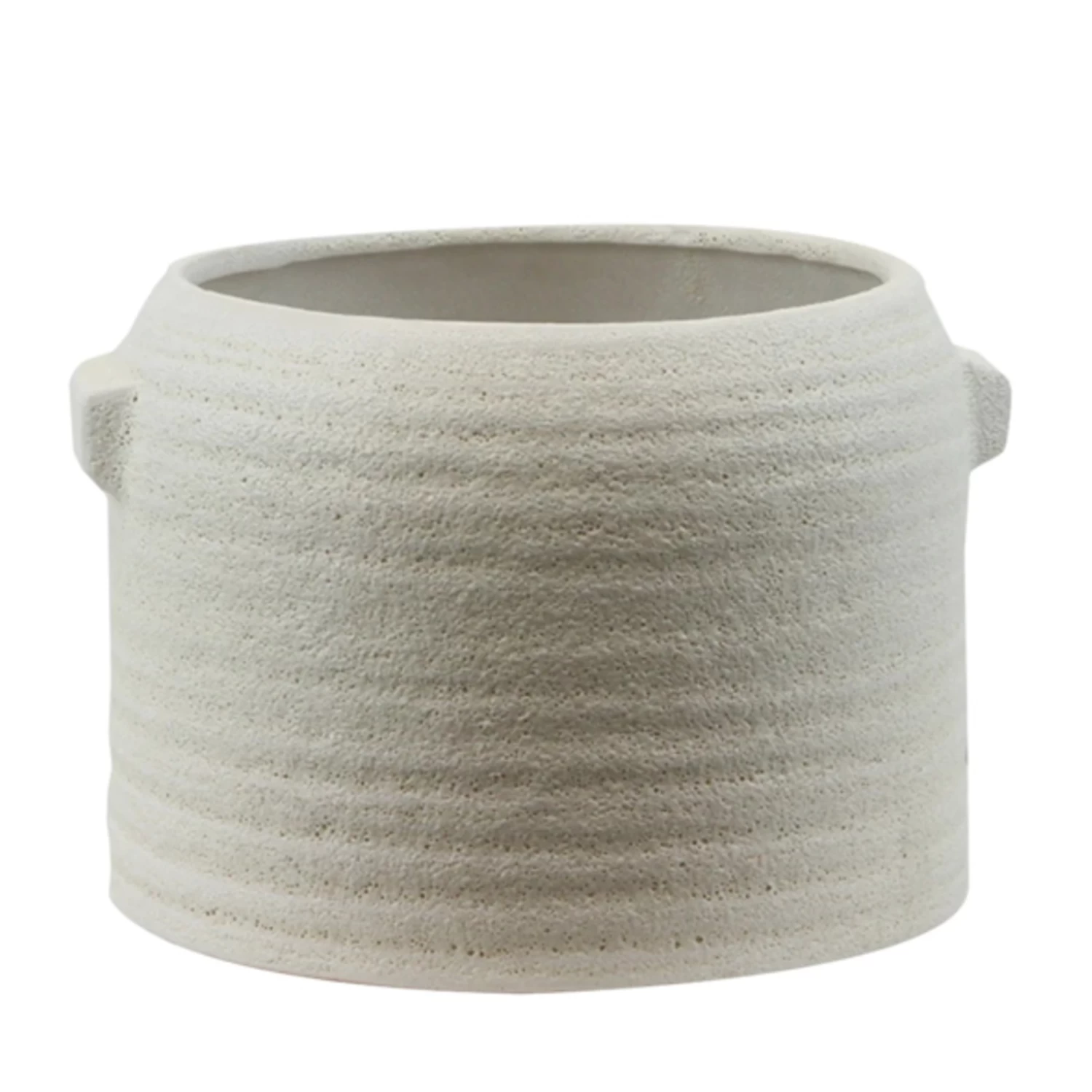 7.25”H X 10.5” WHITE ZINTO LOW AND WIDE CERAMIC PLANTER WITH SMALL HANDLE