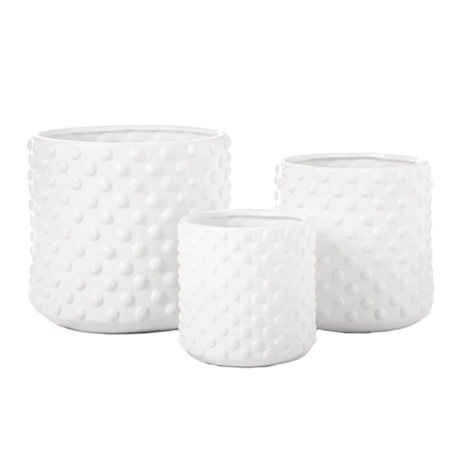7.5” X 8” LARGE Matte White Round Ceramic Pot With Embossed Dotted Pattern Design Body