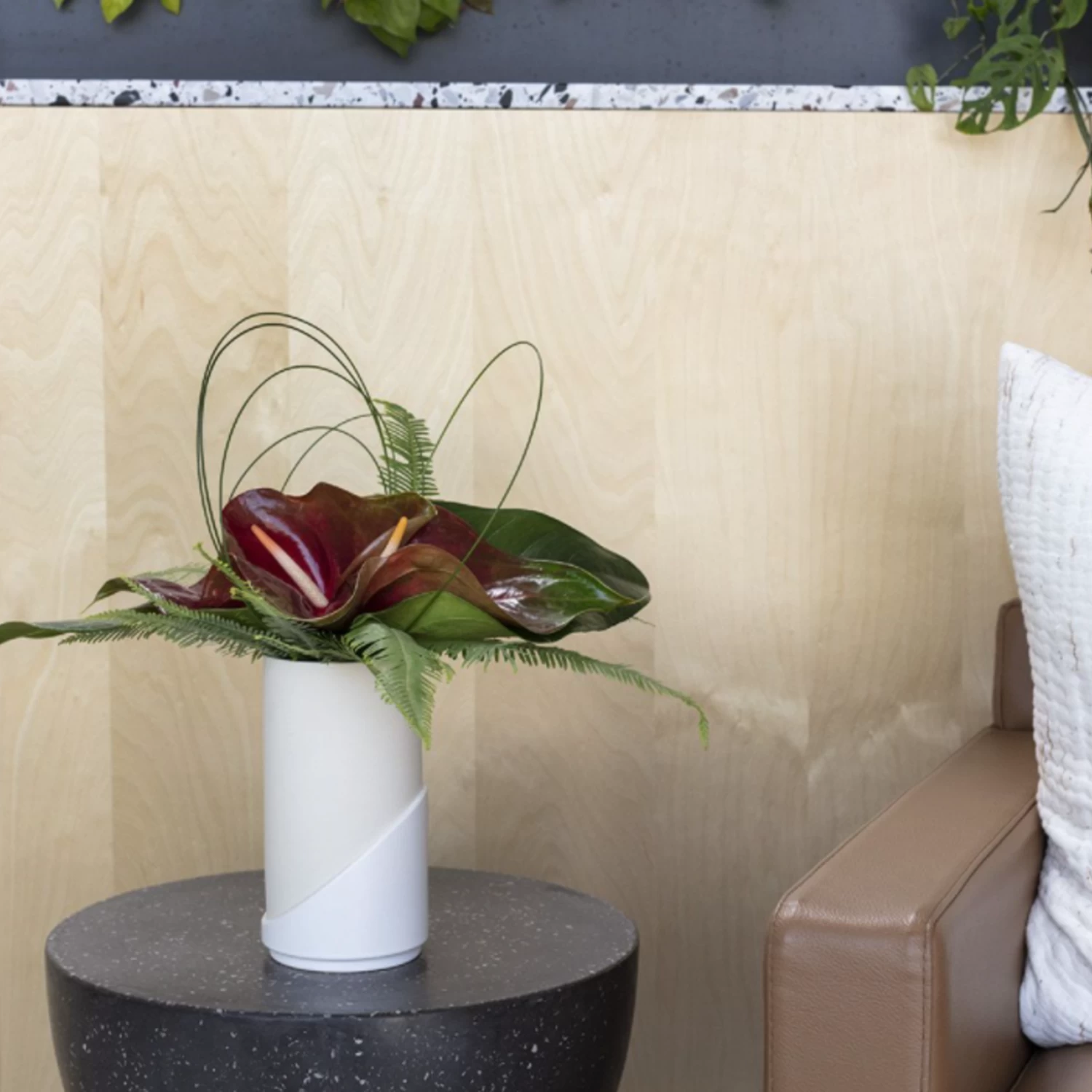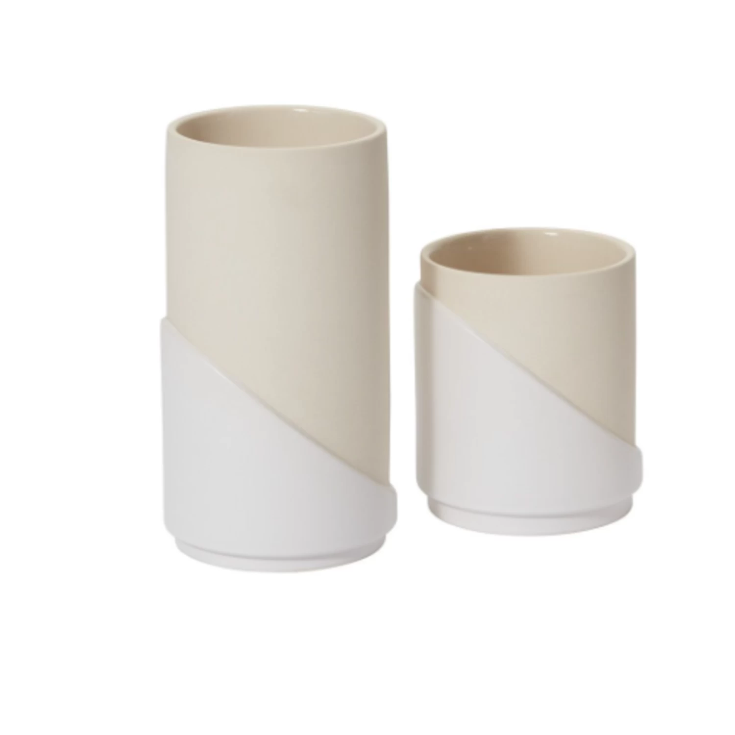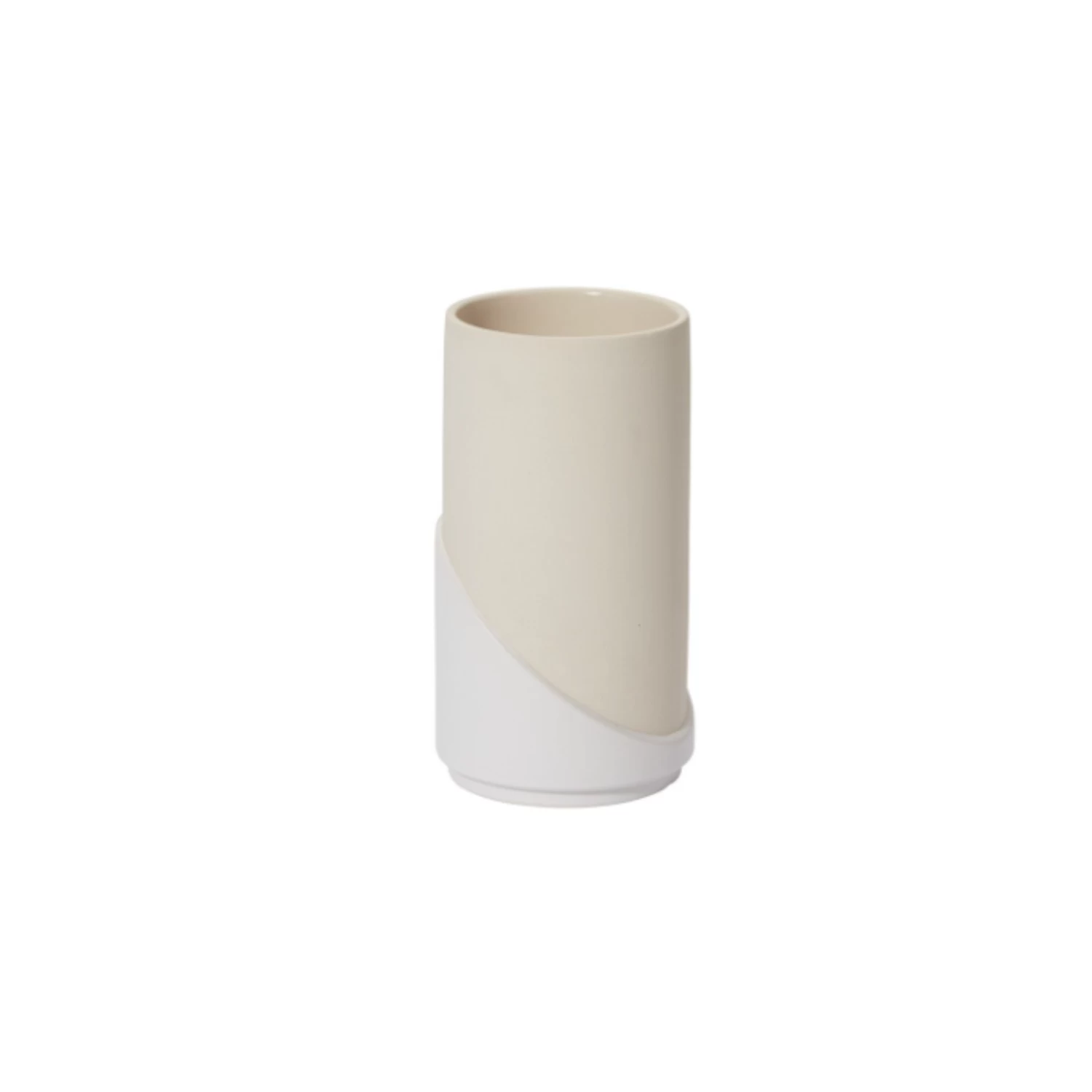 7.75”H X 4” WHITE/TAN CERAMIC LENNE POT/VASE