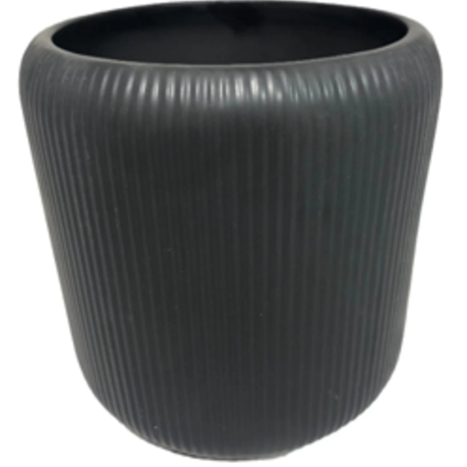 7” X 7” RIBBED BLACK CERAMIC CYLINDER POT VASE