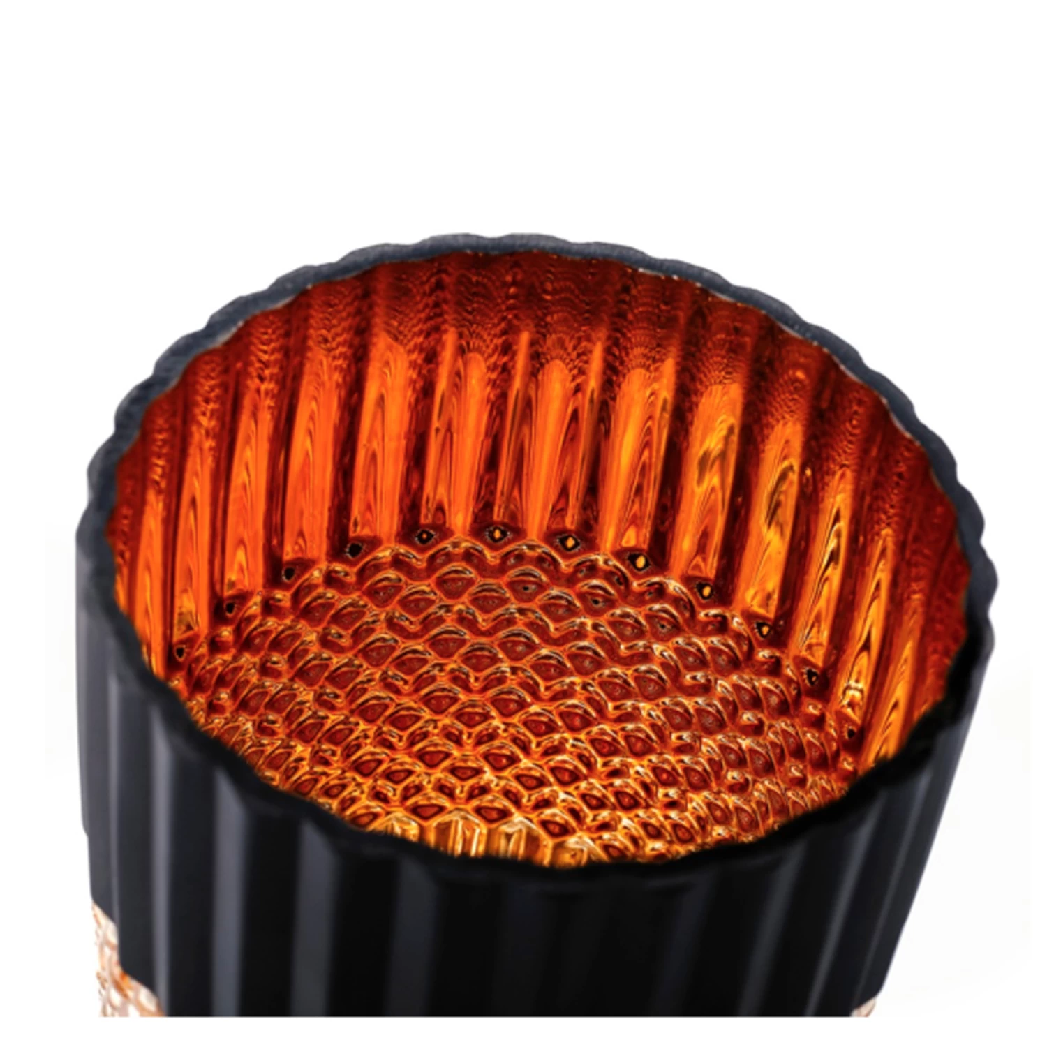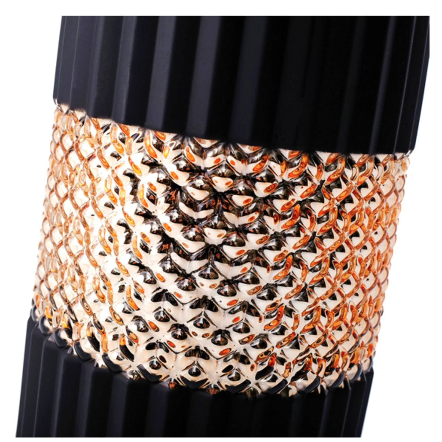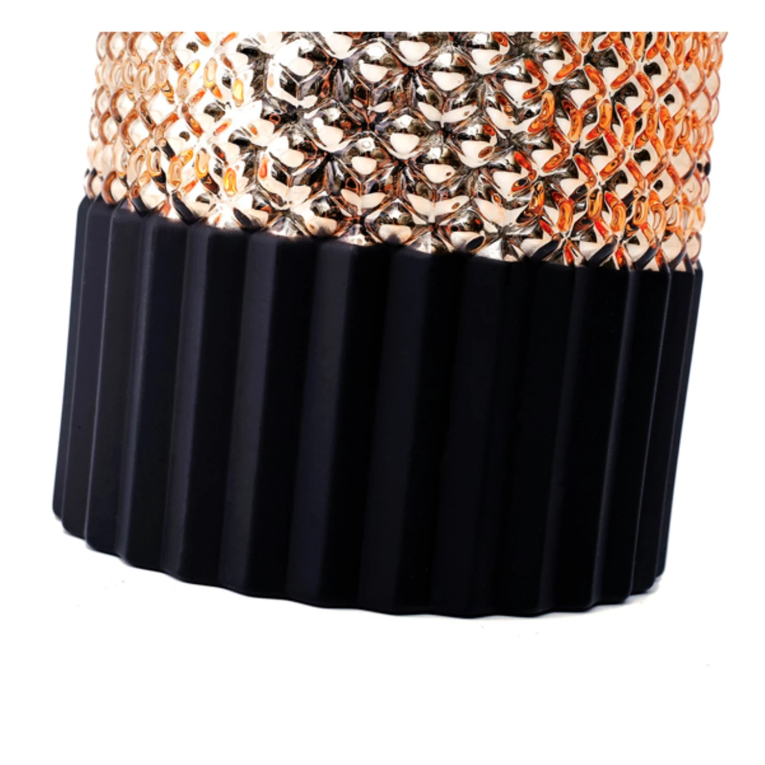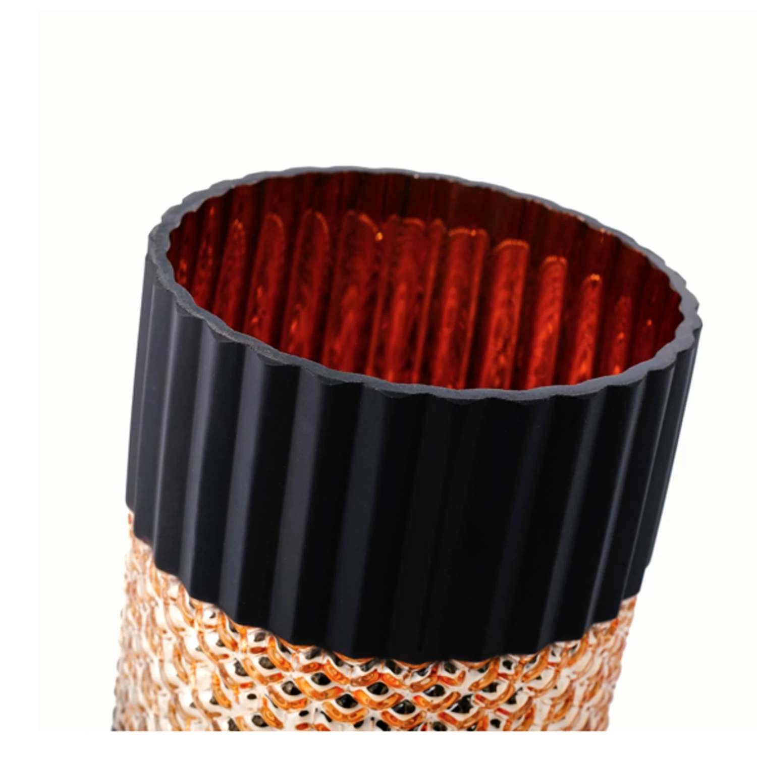 8”H X 4.5” BLACK WITH GOLD STUDDED AND RIBBED GLASS VASE