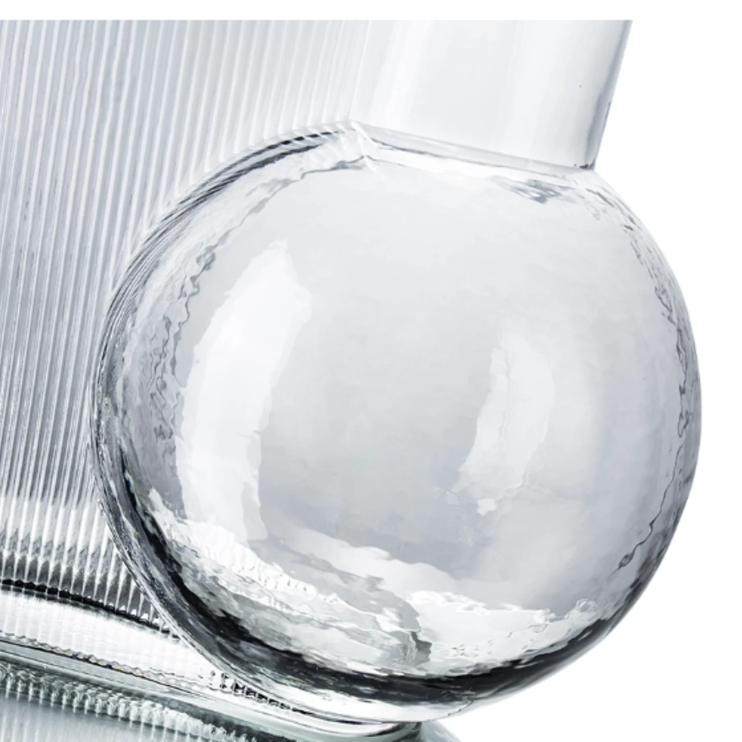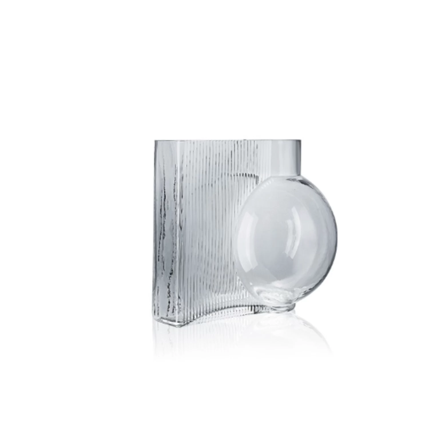 8”H X 6L” X 9”W GREY GLASS RIBBED/FLUTED RECTANGLE WITH BUBBLE