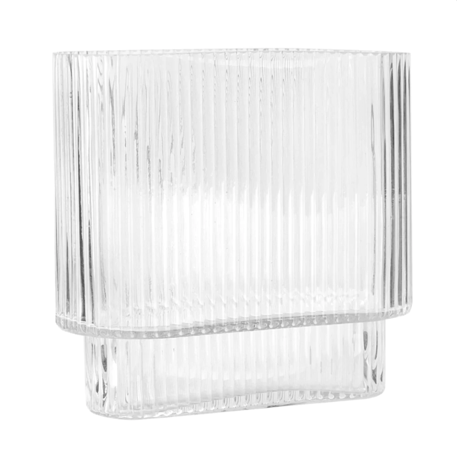 8”H X 8” X 3.75” OVAL GLASS FLUTED VASE