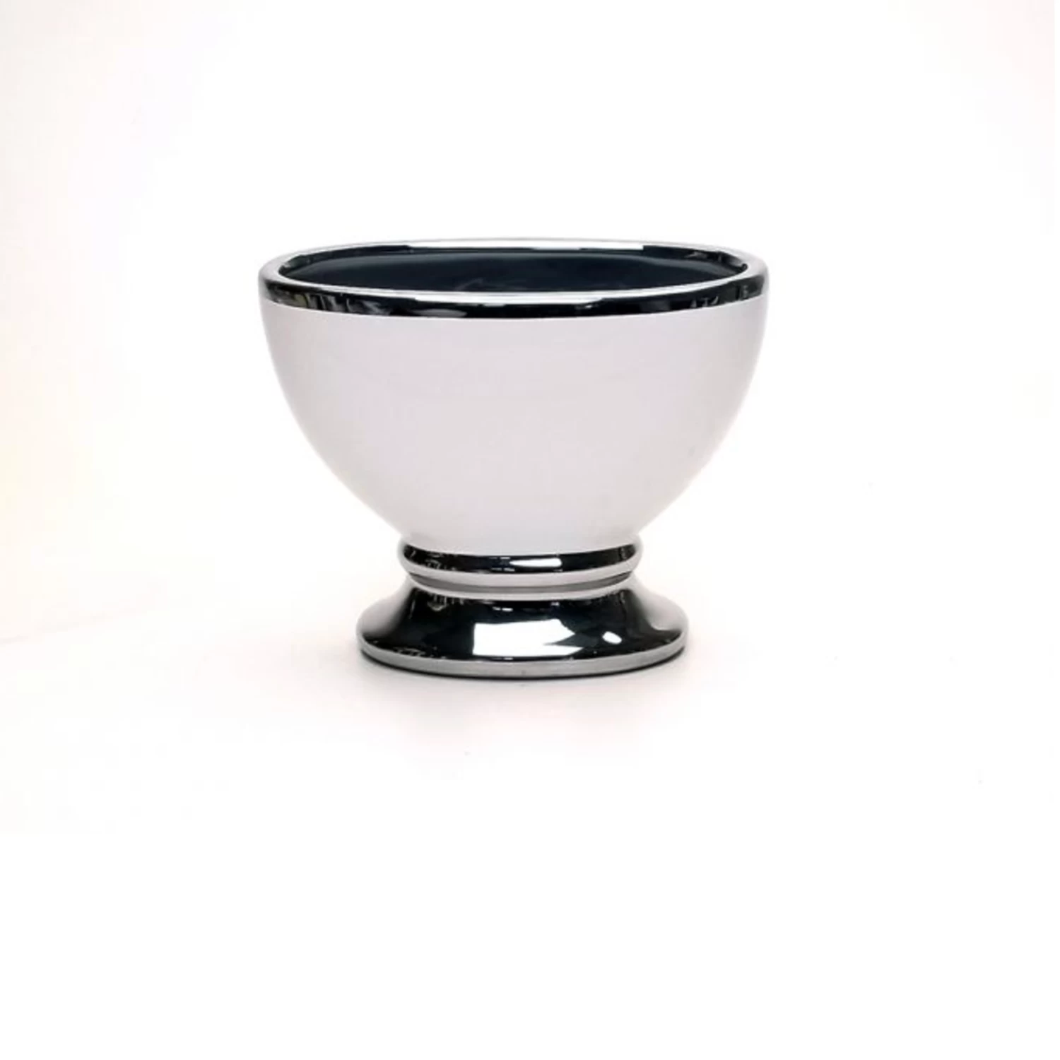 8”H X 9.5”L X 5”W CERAMIC OVAL COMPOTE VASE WHITE WITH SILVER