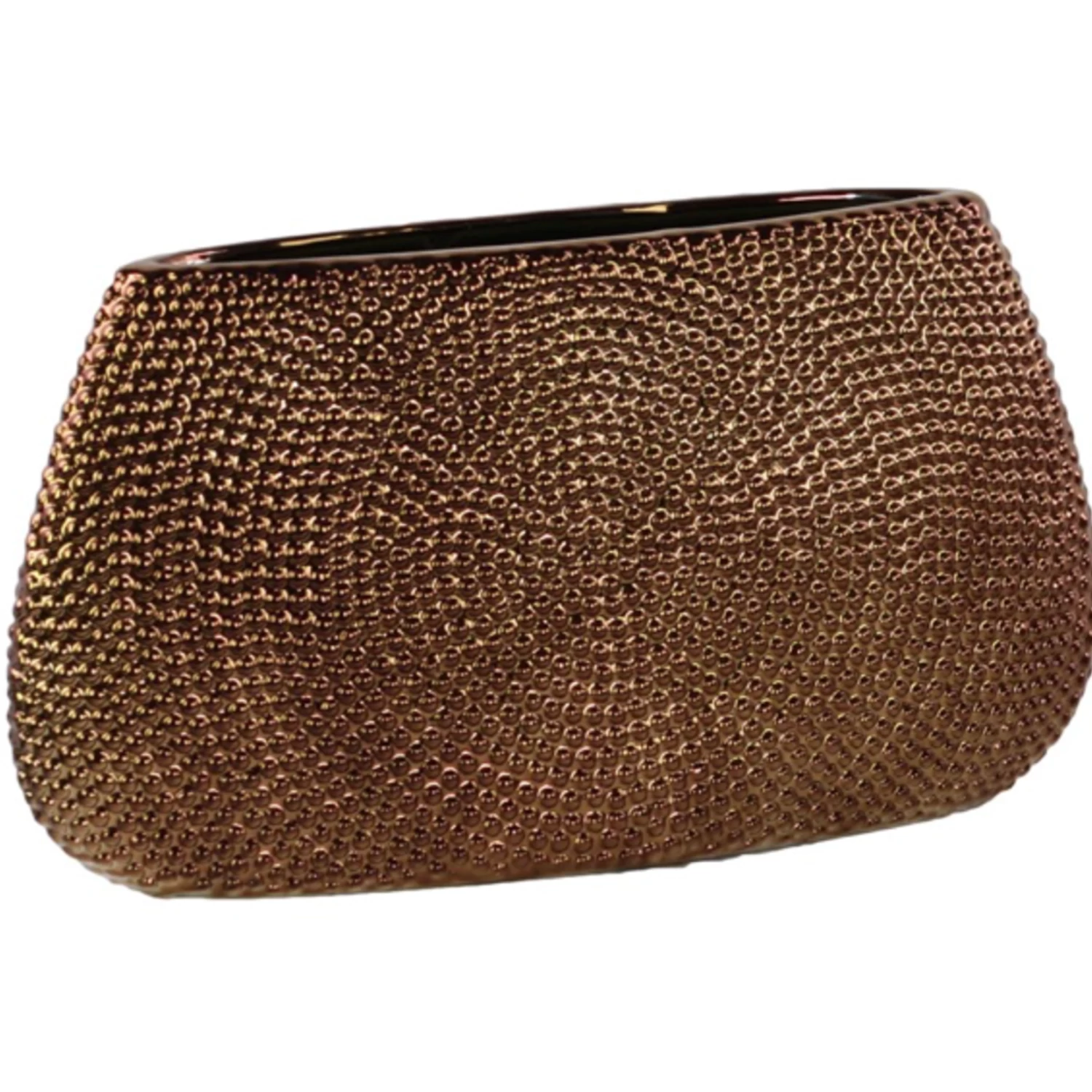 9.25”H X 3.5” X 17”L BRONZE CERAMIC RECTANGLE VASE WITH BEADED DOTTED PATTERN