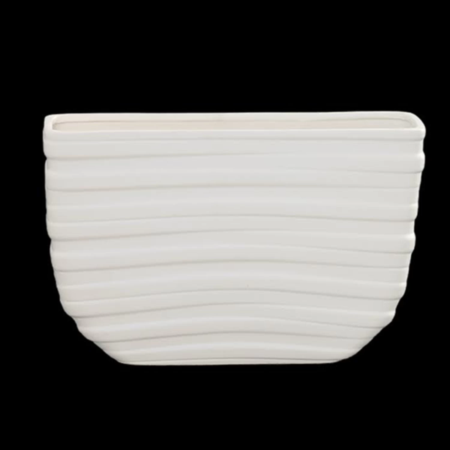 9.25”H X 5” X 14”L WHITE RECTANGLE EYE VASE WITH ALTERNATE BANDED