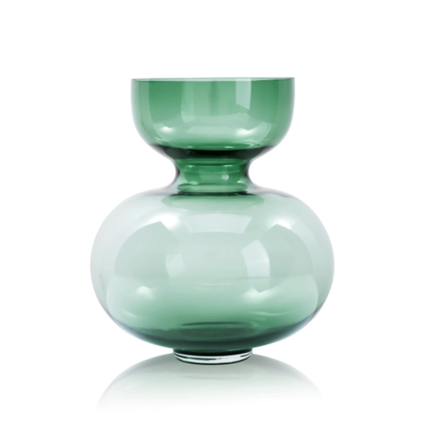 9.75’H X 8.75” GREEN GLASS DOBLE VASE -Home Decor Store 975h x 875 green glass doble vase 1