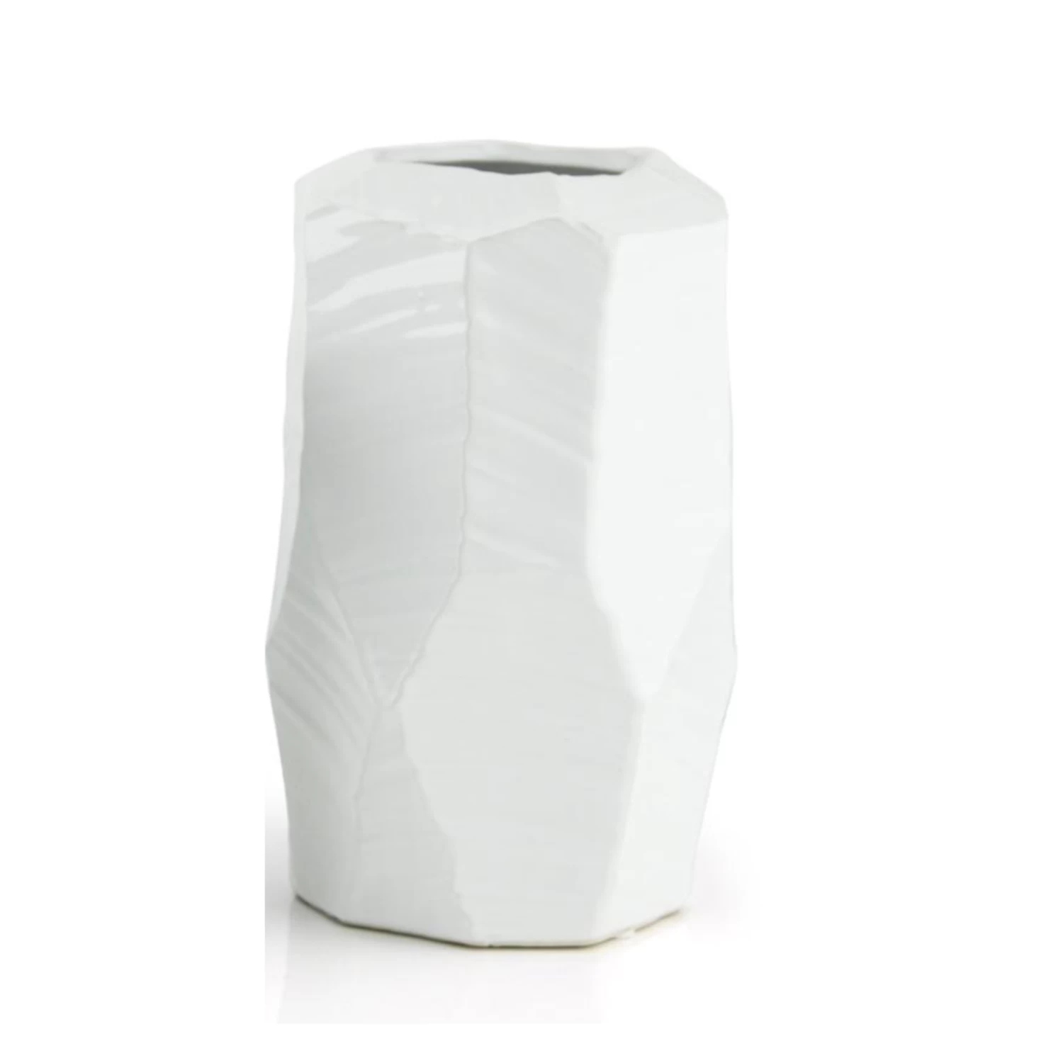 H-7.75″ D-5.75″x5.75″ Open-3.5 WHITE GLOSSY GEOMETRIC CERAMIC